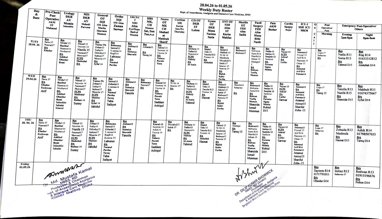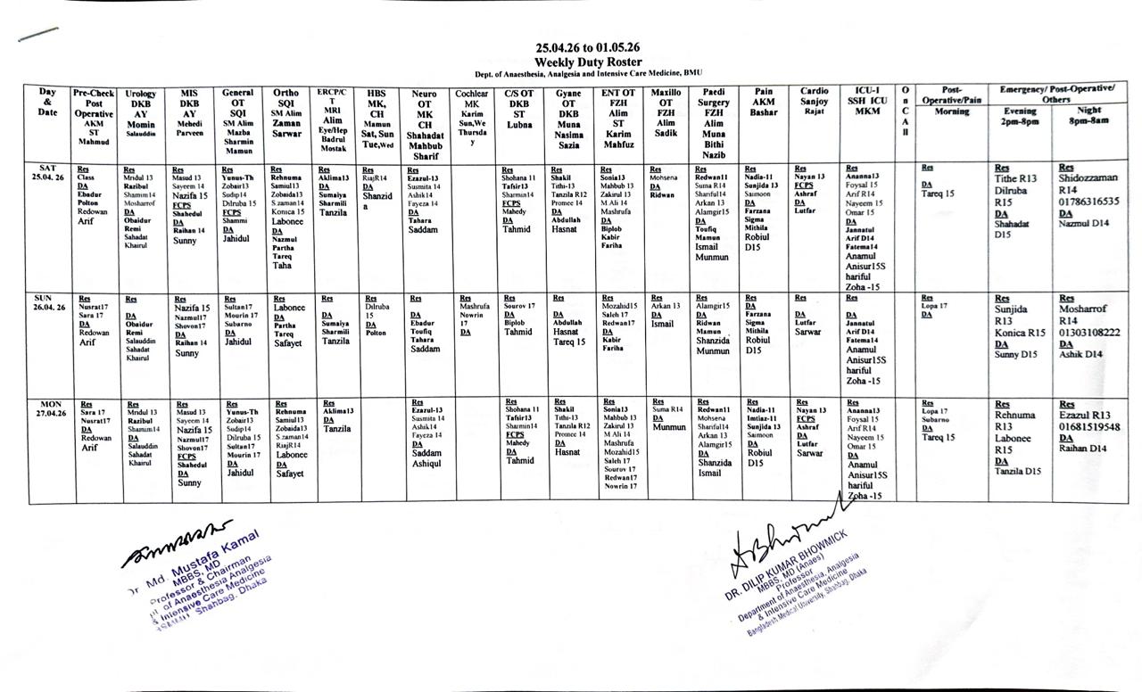 Weekly Duty Roster (25/04/2026 - 01/05/2026)